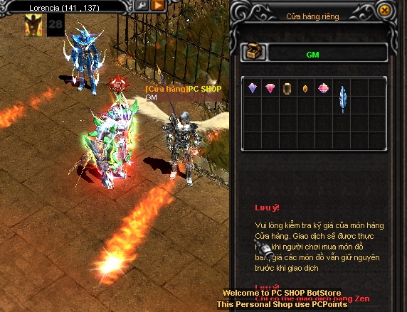 • NPC GM Store Tọa độ: 140 138 tại map Lorencia chỉ mua được = tiền tệ PcPoints